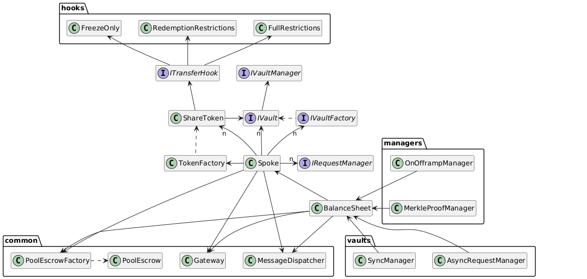The Spoke module is a core component of the Centrifuge protocol's on-chain infrastructure, responsible for local management and orchestration of asset pools, share classes, vaults, and related operations. It acts as the local registry and integration hub for factory-based deployments and other pool contracts.