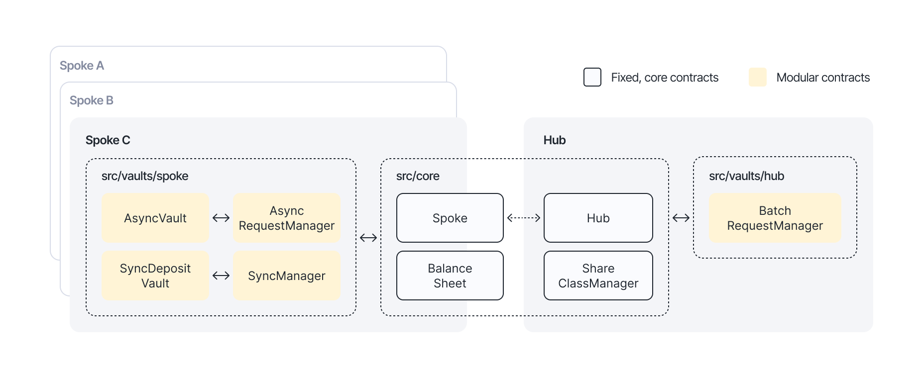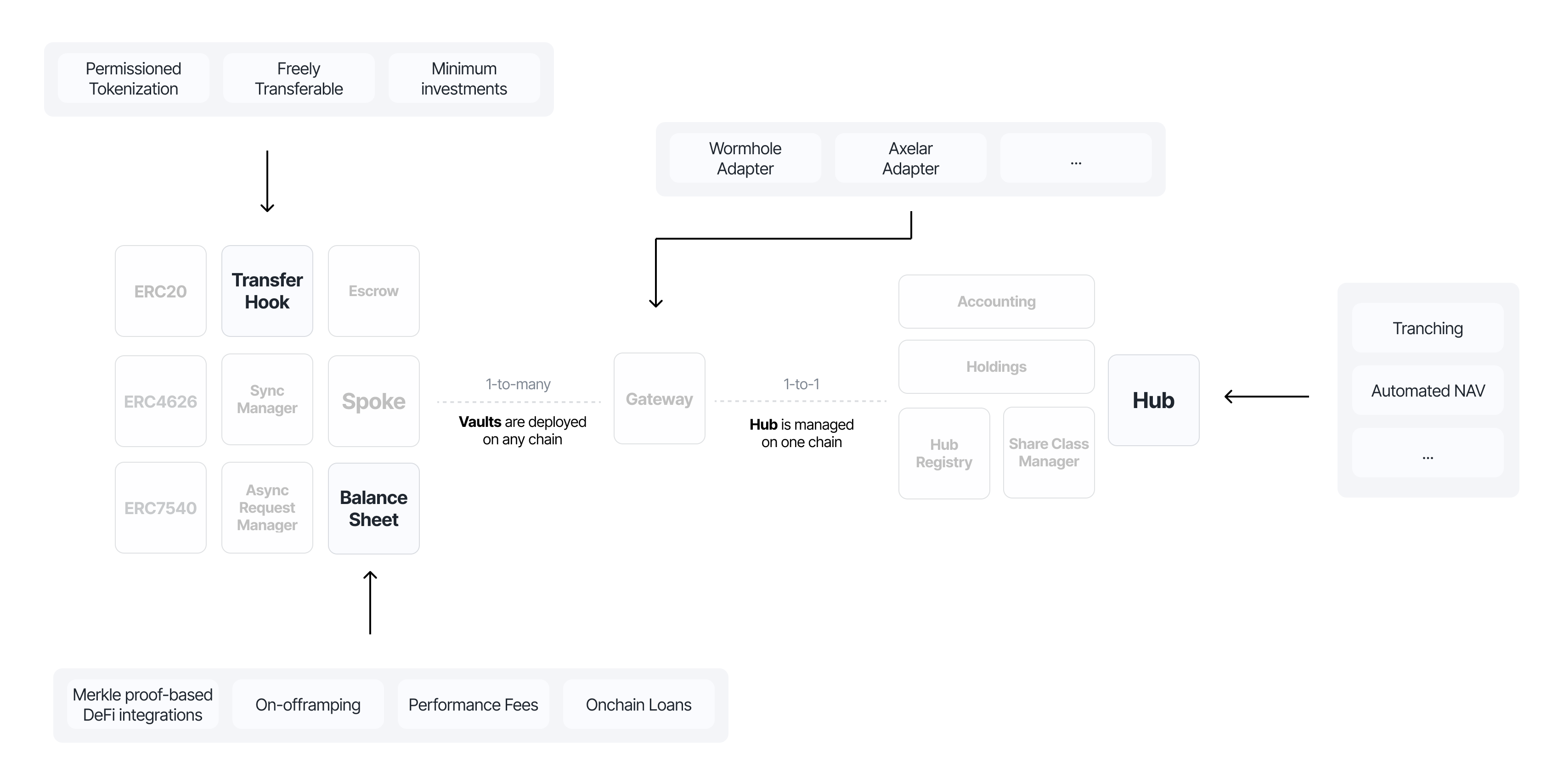 is the central smart contract responsible for managing Net Asset Value (NAV) calculations, investor share class logic, and fund-level mechanics. Using Hub Managers, developers can define custom logic for: