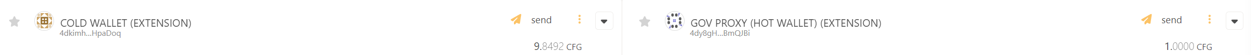 You also need to transfer a small amount of tokens to your proxy to cover transaction fees; a couple of CFG should be more than enough.