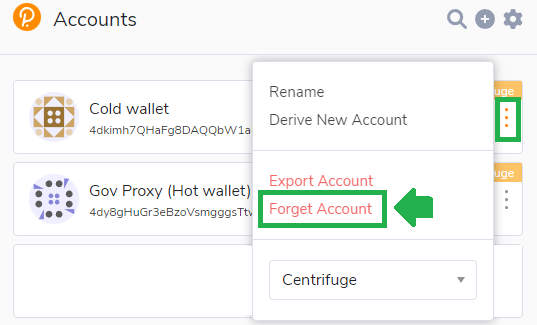 Your Governance Proxy is now set up and ready to be used. If you want to keep your cold wallet cold, make sure to remove it from the extension again, by clicking on the three dots next the wallet in the Polkadot.js browser extension and selecting Forget Account.