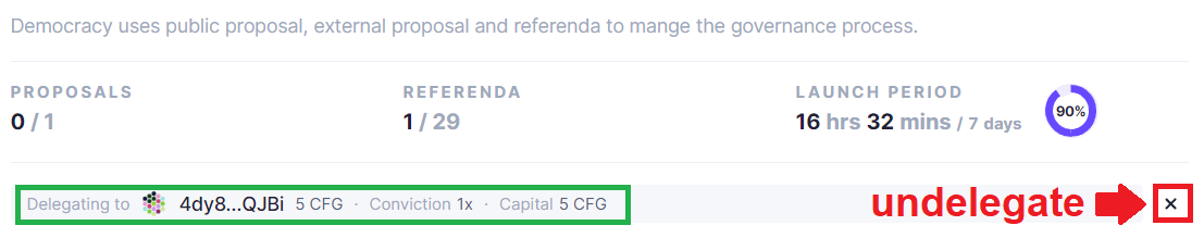 You should now be able to see your delegation on Subsquare. To remove a delegation, simply click on the X and sign the transaction.